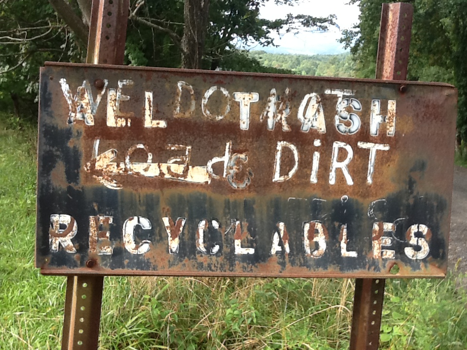 - At the transfer station, I tried to decipher a crudely-lettered sign without benefit of the HaruSpex, still in the office. I took the right fork, which was wrong, and dumped recyclables over the top of a high bin. A worker scolded him, saying “I’ll have to empty it” and met with hostility Reprobate Randall’s offer to do it himself. A few years later the place was dramatically more welcoming:
