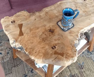 A three-year-old saw the new table created by Phoenix Hardwoods and protested, “It’s just a piece of wood!” Cup by Jayn Avery.