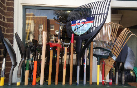 On the sidewalk of Farmers’ Supply, the annual rake-o-rama: